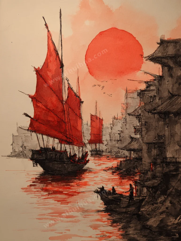 AI Prompt A dinkfsn style ink wash painting, intricate linework with expressive contrasts, inksketch of a Chinese Junk sailing into a south-east asian medieval harbour, sunset --ar 3:4 中文大意:一幅丁克夫森风格的水墨画,错综复杂的线条与富有表现力的对比,一艘中国垃圾船驶入东南亚中世纪港口的水墨素描,日落 --ar 3:4 查看更多抽象/艺术 |