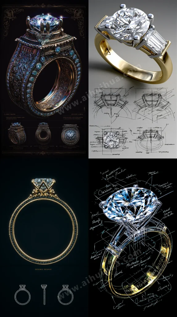 AI Prompt Classic diamond ring design, high-definition final product rendering showcasing the overall appearance of the ring, with a round-cut diamond set in the center, sparkling facets of the diamond. Detailed breakdown illustration displaying the ring's structure, including prong settings, band design, and inner band engravings. Gold band material with fine polished finish, demonstrating the ring's luxury and delicacy. --ar 9:16 --c 50 中文大意:经典的钻石戒指设计,高清的最终产品效果图展示了戒指的整体外观,圆形切割的钻石镶嵌在中心,钻石闪闪发光的小平面。详细的分解说明显示环的结构,包括叉设置,带设计,和内部带雕刻。金表带材质,精致抛光,彰显戒指的奢华与精致。 --ar 9:16 --c50 查看更多手工/工艺品/商品 |