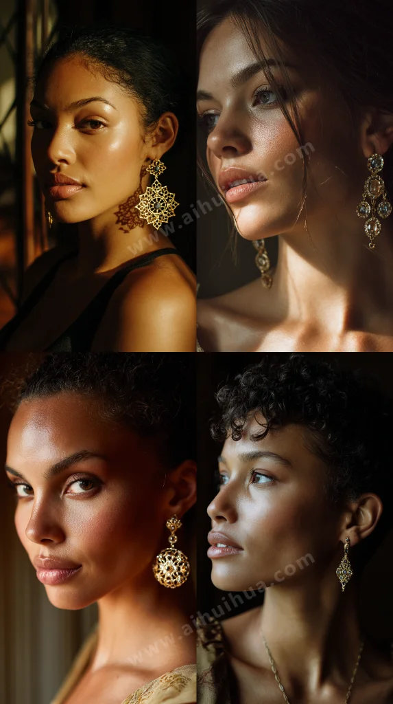 AI Prompt Model portrait wearing chandelier earrings, 24k gold and sapphire, natural warm window light, close-up neck and jawline, soft skin tones, elegant editorial vibe, shallow depth, realistic skin reflections --ar 9:16 --v 7.0 中文大意:模特肖像佩戴枝形耳环,24 k金和蓝宝石,自然温暖的窗户光线,特写颈部和下巴,柔和的肤色,优雅的编辑氛围,浅的深度,逼真的皮肤反射 --ar 9:16 --v 7.0 查看更多手工/工艺品/商品 |