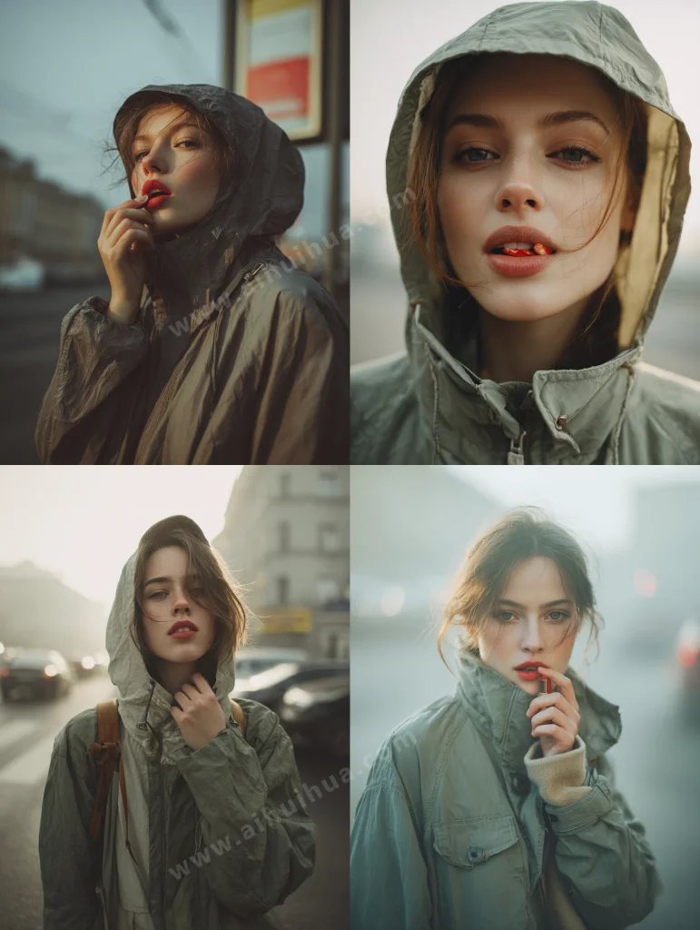 AI Prompt On the street of the city, a female model bites her lips with lipstick with her teeth and stands on the roadside wearing a windbreaker. The grey-green and beige tones are natural and realistic. The windbreaker fabric is delicate in texture, the fog is lingering, and the morning light is soft. Real photography style --ar 3:4 中文大意:城市街边,女模特用牙齿咬着涂着口红的嘴唇,身披风衣站在马路边,灰绿与米黄色调,自然写实风格,风衣布料质感细腻,雾气萦绕,晨光柔和,具有自然光线的真实摄影风格 --ar 3:4 查看更多男模/女模 |