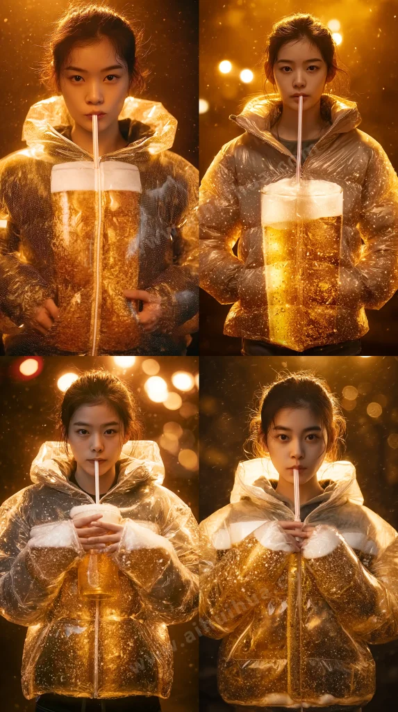 AI Prompt https://mj3-1256181000.cos.ap-shanghai.myqcloud.com/img/cdn/member-20251106/w816_h1456_gV2xWSHFNbDNrQTdGTkwydzNlRmhFZz09-----a9b699f60884d91c1375285e0e7c0b4a.png A young Asian girl was wearing a down jacket filled with golden beer (sprinkled with white foam), holding a white straw in her mouth, and her hands in her pockets. Warm fairy tale lights. Real, detailed, cinematic lighting. --ar 9:16 --iw 2 --v 7.0 中文大意:https://mj3-1256181000.cos.ap-shanghai.myqcloud.com/img/cdn/member-20251106/w816_h1456_gV2xWSHFNbDNrQTdGTkwydzNlRmhFZz09-----a9b699f60884d91c1375285e0e7c0b4a.png 一名亚洲的年轻女孩,穿着羽绒服,里面装满了金色啤酒(上面撒着白色泡沫),嘴里叼着一根白色吸管,双手插在口袋里。温暖的童话灯光。真实、详细、电影般的照明。 --ar 9:16 --iw 2 --v 7.0 查看更多男模/女模 |