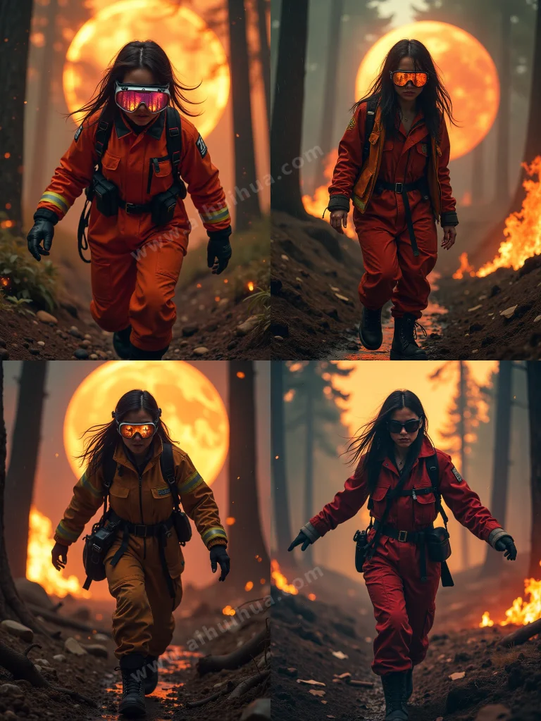 AI Prompt In the dystopian Cyberpunk urban landscape of Forest Hell (2025), a striking ultra-maximalist portrait captures the tense moments of a mysterious Caucasian female forest firefighter. Her loose black hair and black eyes convey her determination to jump through the flames, and she wears goggles that reflect a breathtaking forest scene. The goggles showed a vibrant background of towering trees and a bright sky, while the man's face remained partially blurred, revealing only their lips and nose. The background is a glowing orange sphere, like fireflies or light particles, creating a mysterious and wonderful atmosphere. Wearing fire suit and combat boots. Amid the downpour of a raging forest fire, she navigated the crumbling environment gracefully and nimbly, like a tree falling ominously behind her. The chaotic background presents an atmospheric cityscape, with ashes and ashes swirling in the burning forest. 8K resolution and complex details create a stunning immersive movie experience. The protagonist's bold and otherworldly dress stood out in the contrasting rain and scorching environment --ar 3:4 中文大意:在《森林地狱》(2025)中反乌托邦的赛伯朋克城市景观中,一幅引人注目的超极大主义肖像画捕捉到了一位神秘的高加索女性森林消防员的紧张时刻。她松散的黑发和黑色的眼睛传达了她在火焰中跳跃的决心,她戴着护目镜,反映了一幅令人叹为观止的森林场景。护目镜显示了高耸的树木和灿烂的天空的充满活力的背景,而这个人的脸仍然部分模糊,只露出了他们的嘴唇和鼻子。背景是发光的橙色球体,像萤火虫或轻粒子,营造出一种神秘和奇妙的氛围。穿着消防服和战斗靴。在狂暴的森林大火的倾盆大雨中,她优雅而敏捷地驾驭着摇摇欲坠的环境,就像一棵树不祥地倒在她身后。混乱的背景呈现出一幅大气的城市景观,灰烬和灰烬在燃烧的森林中旋转。8K分辨率和复杂的细节创造了令人惊叹的身临其境的电影体验。主人公大胆、超凡脱俗的着装在对比强烈的雨和灼热的环境中显得格外突出 --ar 3:4 查看更多二次元/卡通/动漫/游戏 |