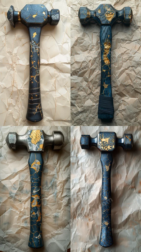 AI Prompt Wabi-sabi inspired hammer, kintsugi-like gold inlays along micro fractures on lacquered head, dark indigo handle wrap; soft washi paper background, diffused warm light --v 6.0 --style raw --ar 9:16 --s 500 --no text watermark logo 中文大意:Wabi-sabi风格的锤子,沿着涂漆头部的微裂缝镶嵌金状金色,深靛蓝色手柄包裹;柔软的和纸背景,漫无目的的温暖光线 --v 6.0 --原始风格--ar 9:16 --s 500 --无文本水印徽标 查看更多手工/工艺品/商品 |