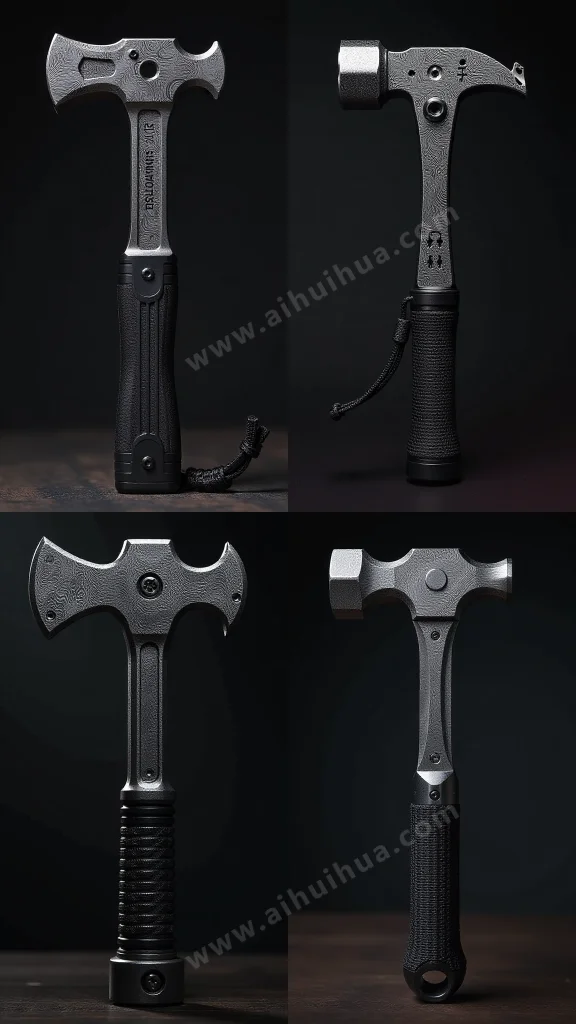 AI Prompt Damascus steel pattern tactical hammer head, cross-peen + pry notch hybrid, black PVD accents; handle: G10 scales over titanium frame, knurled texture, paracord lanyard; moody dark background, specular highlights, dramatic rim light --style raw --ar 9:16 --s 350 --no text watermark logo 中文大意:大马士革钢图案战术锤头,十字锤+撬缺口混合,黑色PVD口音;手柄:钛框架上的G10鳞片,滚花纹理,伞索;喜怒无常的深色背景,镜面高光,戏剧性的边缘光线 --style raw --ar 9:16 --s 350 --无文本水印徽标 查看更多手工/工艺品/商品 |