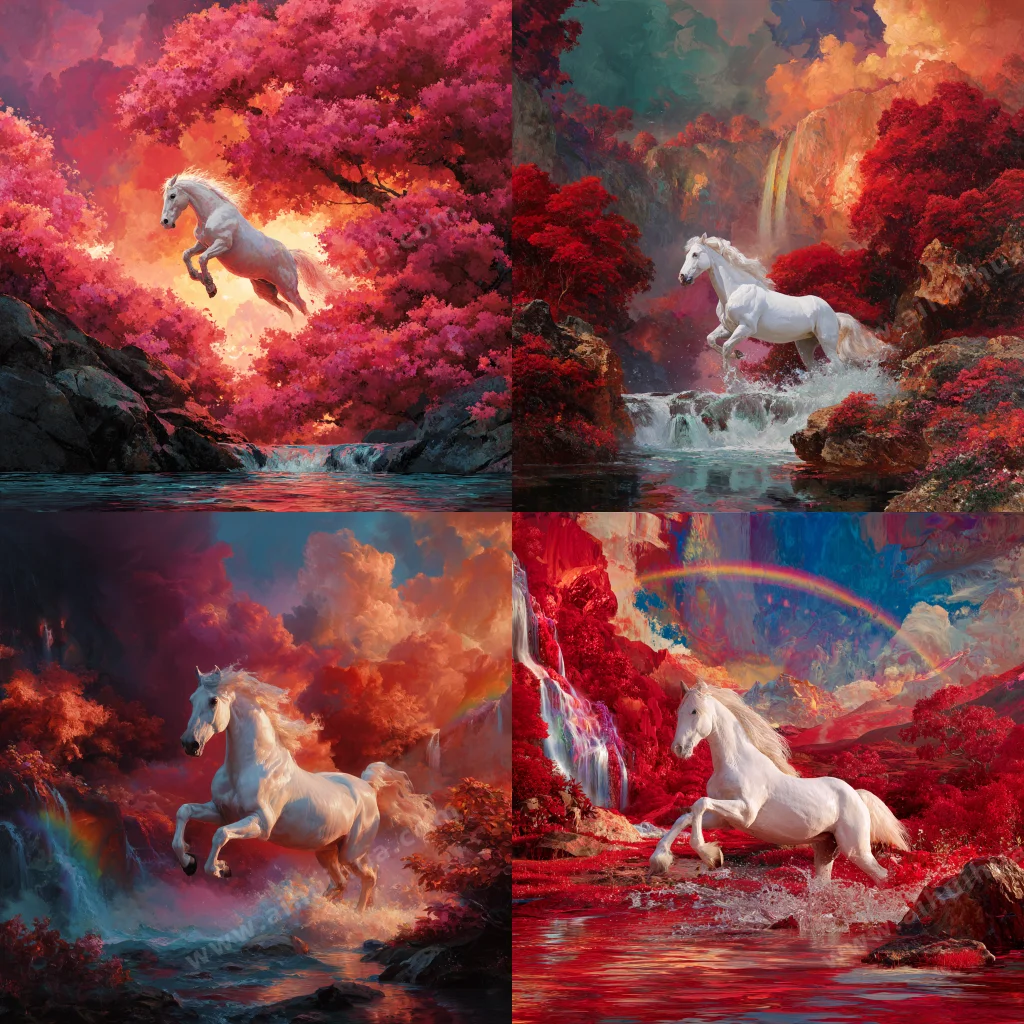AI Prompt In the white horse leaping in the rainbow and the splashing waterfalls, osmanthus is warmed by the rainbow-like light. A fiery red shadow rose and rushed into the blue sky, forming a fantasy and gorgeous scene. 中文大意:在彩虹中跃动的白马,瀑布飞溅的景象中,桂花被彩虹般的光芒温润。一道火红的阴影升起,冲向蔚蓝的天空,构成奇幻而绚丽的场景。 查看更多手绘/插画 |