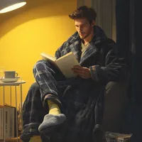 男士法兰绒睡袍