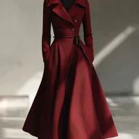 女士酒红色毛呢外套