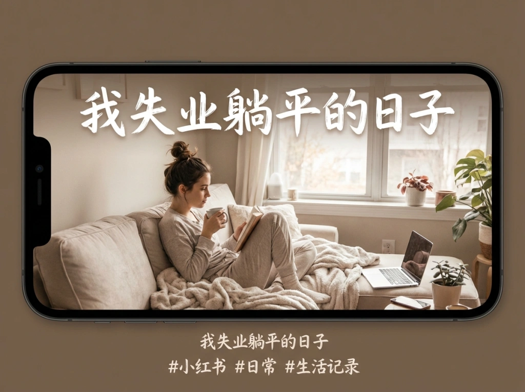 制作一个小红书封面, 主题是“我失业躺平的日子”