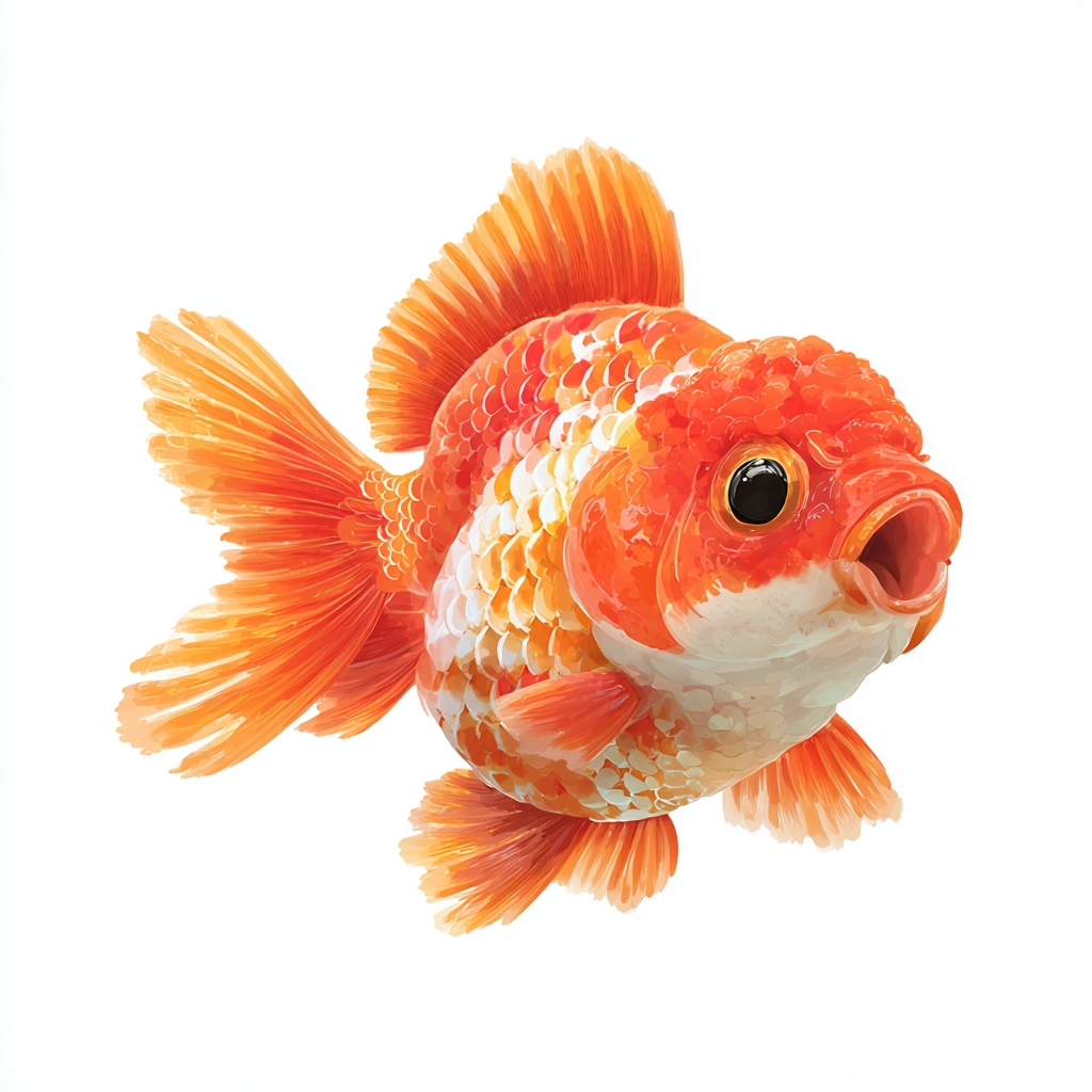 提示词(Prompt) 白色背景,正面卡通金鱼IP形象,橙色身躯,尾鳍宽大渐变,鳞片有亮点细节,眼睛圆润,嘴巴微笑,整体色彩明亮 |