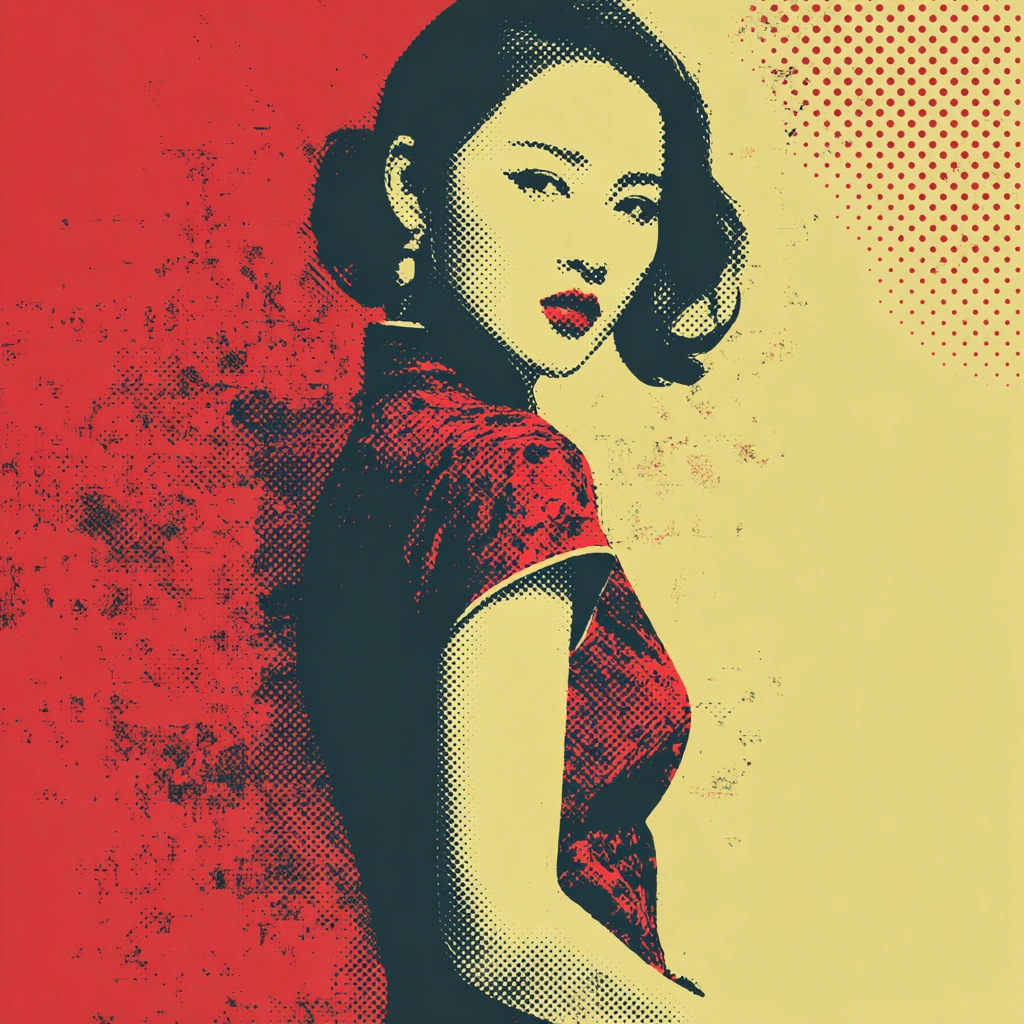提示词(Prompt) 油墨印刷风:年轻东方女性,CMYK分色网点明显,轻微套印偏移造成彩边,半调点与粗线并存,复古印刷质感 |
