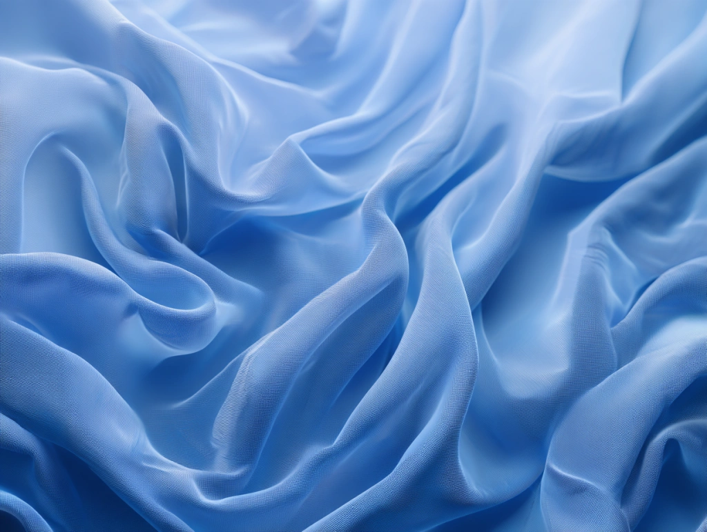 以光滑蓝色的细纱布为背景,渐变背景,有点褶皱,灯光效果柔和,极简优雅,高清渲染 --ar 4:3