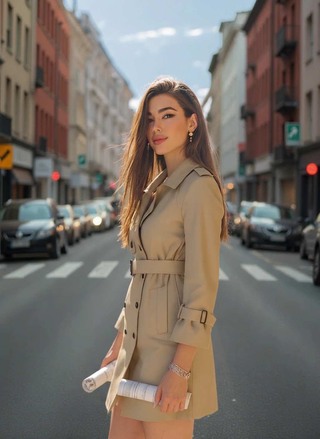 图1的女人,站在图2的街道上