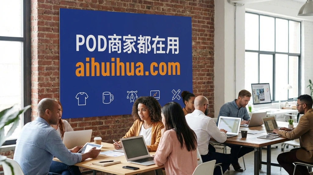 提示词(Prompt) 使用现代字体和真实风格制作海报,主题为“POD商家都在用 aihuihua.com” |
