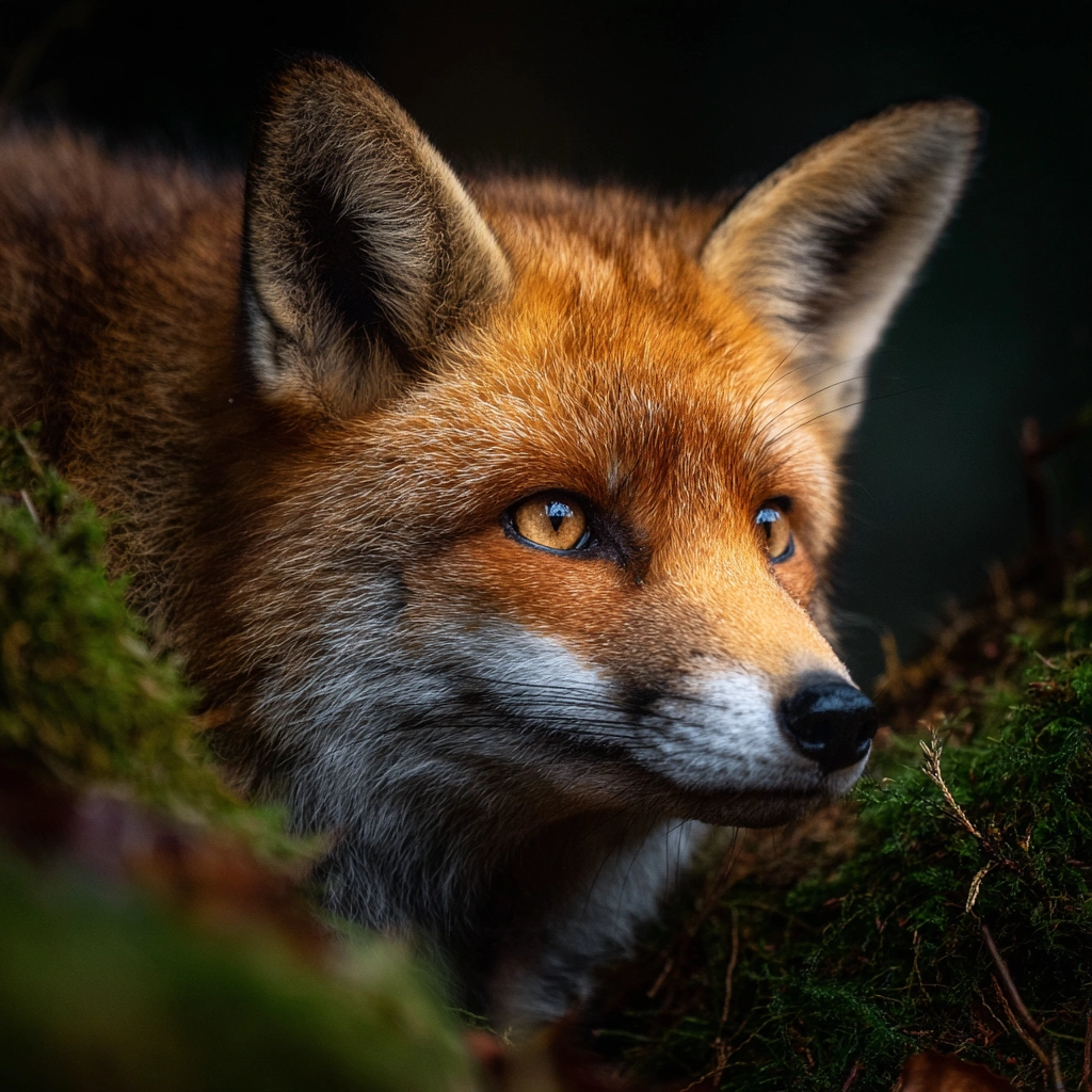 提示词(Prompt) 林间苔藓地,红狐侧脸特写,橙红柔顺毛发与锐利眼神,高清野生动物特写风格,鼻尖湿润,斑驳光影落在狐狸脸部,氛围神秘安静 |