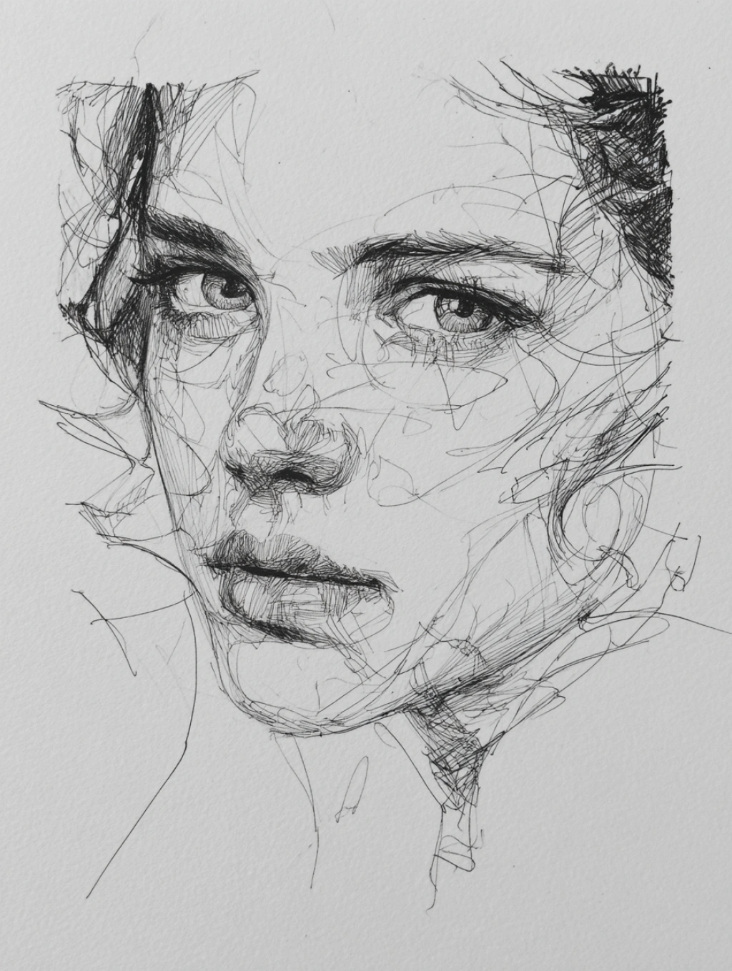 提示词(Prompt) 女人脸部素描,富有表现力的线条,具有美丽肖像的风格 --ar 3:4 --v 7 |